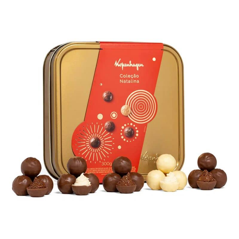 Por fim, tem a Lata Nuts Natalina (R$ 109,90), que traz um sabor diferenciado, com um toque de frutas e não só o chocolate. São 300g de pura crocância: chocolate ao leite com macadâmia caramelizada, chocolate ao leite com avelã e chocolate amargo com castanha-de-caju.