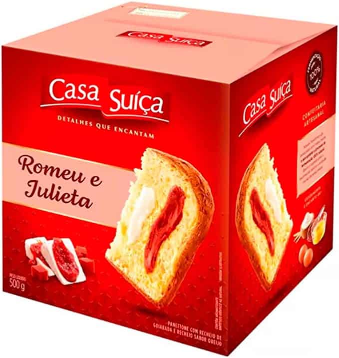 Panetone com duplo recheio de goiabada e queijo. Uma delícia!...