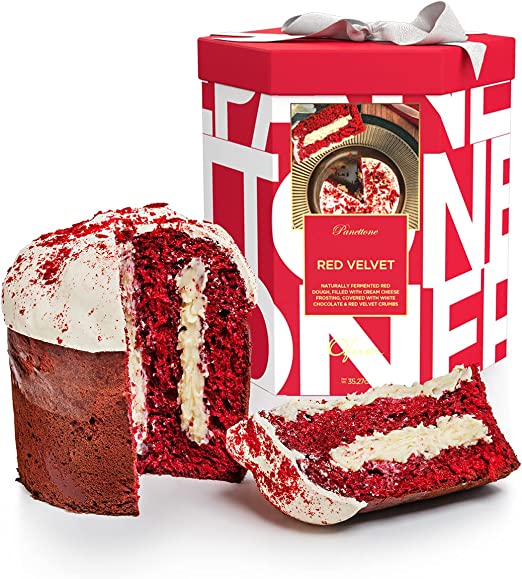 Panetone com massa avermelhada e recheio de cream cheese adocicado. Cobertura leve de chocolate branco e polvilhado com massa red velvet. ...