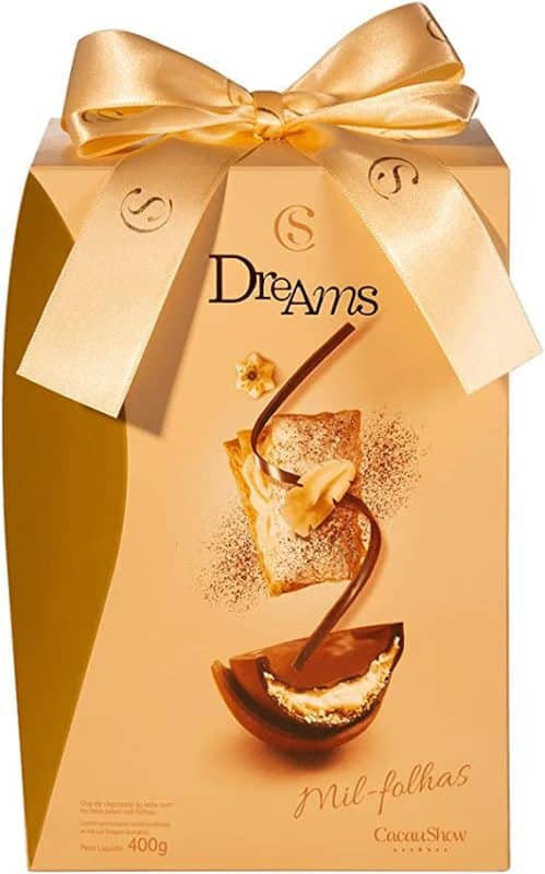 OVO DREAMS MIL FOLHAS 400G Ovo de chocolate ao leite com casca recheada sabor mil-folhas. Um sonho de sobremesa para presentear nessa Páscoa! Alergêni...