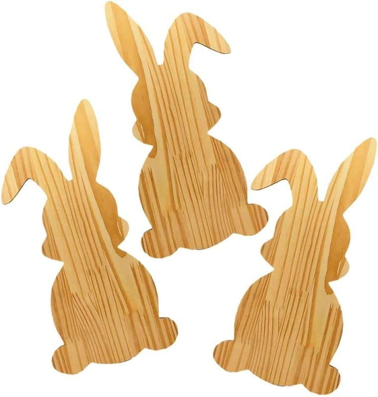 Kit composto por 3 tábuas de Madeira em formato de Coelho de Páscoa.