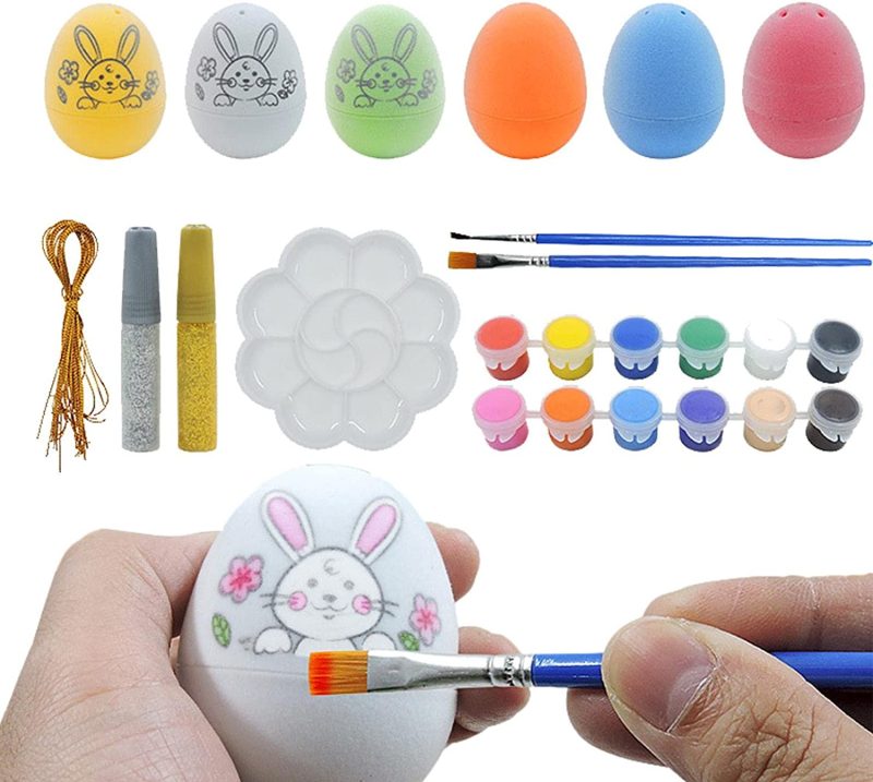✩[Itens DIY ideais] O kit de pintura de ovos de Páscoa está equipado com 24 ovos de Páscoa, 12 cores de tinta, 2 pincéis, 1 paleta, 2 brilhos e 24 cor...