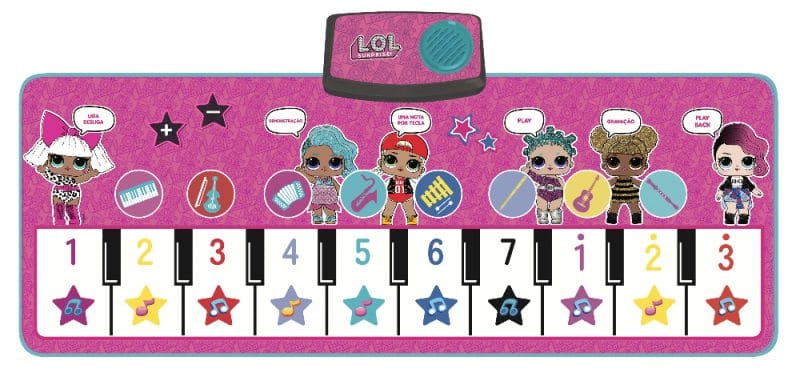 O destaque fica para o Tapete Piano L.O.L. Surprise com oito músicas, oito tipos de sons, 19 teclas de piano e um jogo de perguntas com preço médio de R$129,99. E o Piano L.O.L. Surprise com 14 teclas, três teclas de estilos musicais e uma tecla para músicas e efeitos de luz com preço médio de R$79,99.