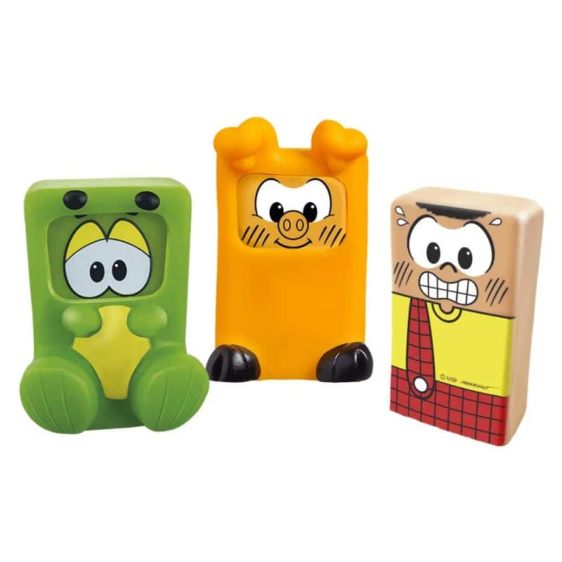 Para deixar a brincadeira mais divertida, os bonecos possuem duas expressões faciais diferentes, tornando as historinhas ainda mais criativas. Por que será que a Mônica está tão zangada? As crianças podem imaginar vários enredos para responder essa pergunta.
