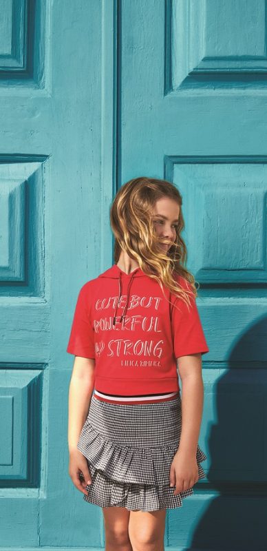 Na linha Urban, peças com capuz, estampas com letras grafitadas, patchs e estrelas. Para complementar o look, vale caprichar nos acessórios, como meias ¾, por exemplo. Já a linha Fun tem as brincadeiras, cores e alegrias como protagonismo. Com estampas divertidas e metalizadas, além de um toque moderno, os macacões, vestidos e camisetas serão as melhores apostas para os dias mais quentes.