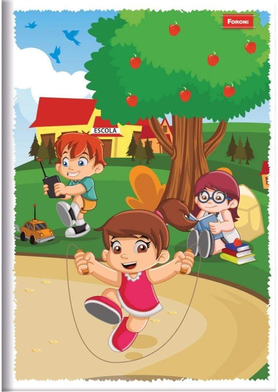 Ainda seguindo a versão “brochura”, a Foroni tem um modelo maior, capa tradicional com ilustrações infantis exclusivas e 96 folhas.