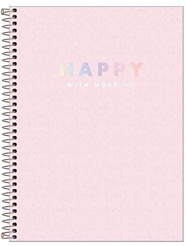 Para os mais crescidinhos, uma boa opção é o conhecido “caderno universitário” com capa plástica Happy, da Tilibra. São 80 folhas e duas versões de cor: rosa e azul.
