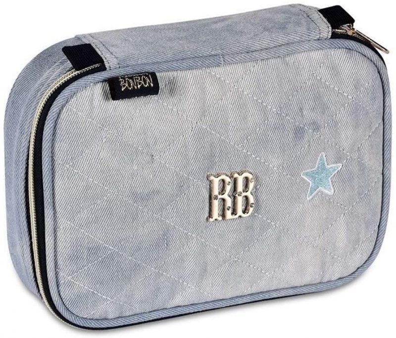 Para acomodar os lápis de maneira que eles não se movimentem e não quebrem as pontas, o estojo porta lápis Rebecca Bonbon Jeans é uma boa opção. Seu diferencial são os elásticos internos que, além de segurar os lápis, os deixam muito mais organizados. Sua estampa imita jeans e tem o cursor do zíper personalizado.