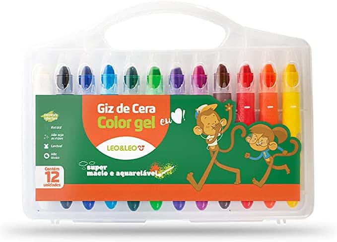Giz de Cera Color Gel Macio e Aquarelavel 12 Cores Leo e Leo