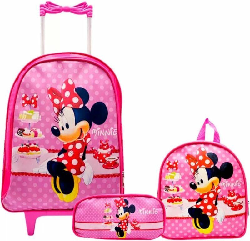 Kit Mochila de Rodinhas Infantil da Minnie com Lancheira Térmica e Estojo Escolar...