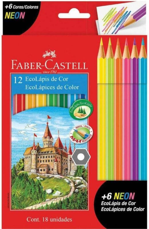Lápis de Cor EcoLápis 12 Cores + 6 Neon, Faber-Castel