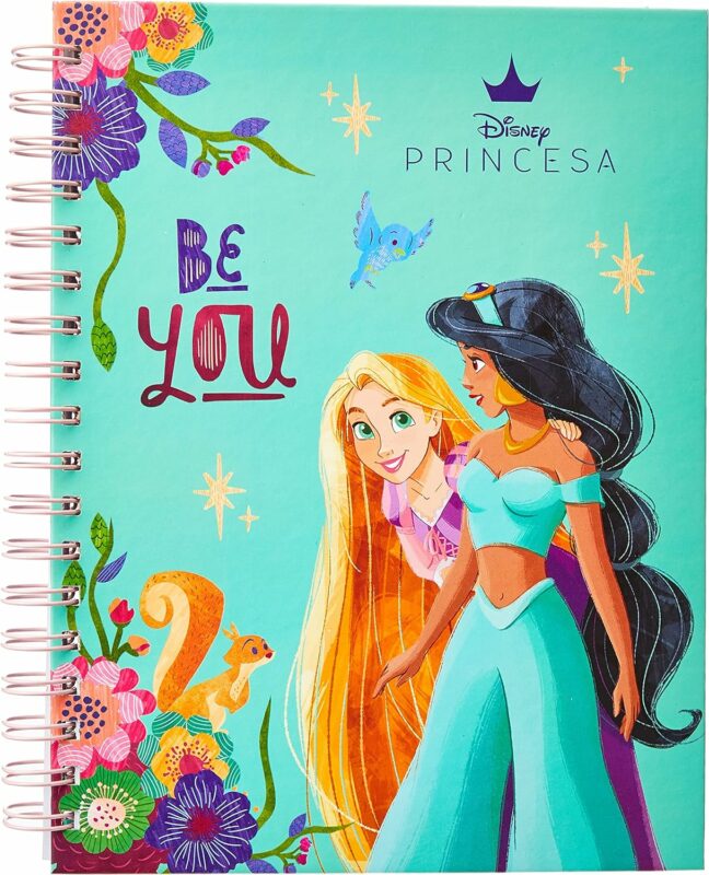 Caderno colegial com wire-o das Princesas da Disney, com 80 folhas com pauta e guarda impressa.