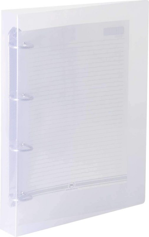 Também feito em PVC, o fichário da DAC é translúcido e suporta mais de 200 folhas no formato A4. A empresa também oferece uma versão menor, modelo Cristal Feminino tamanho ¼, com contra capa em polipropileno rosa. Acompanha 192 folhas.