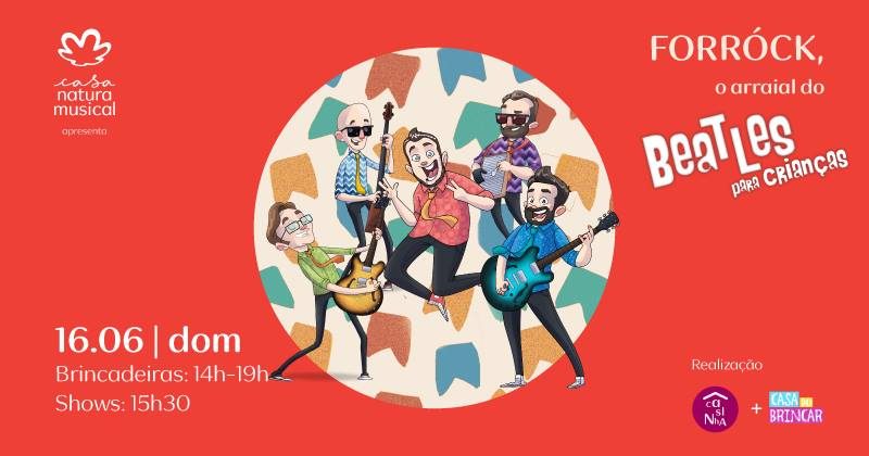 Festa junina e rock’n’roll combinam? Para o Beatles para Crianças a resposta é: SIM!!! A Casa Natura Musical promove no dia 16 de junho, domingo, das 14 às 19h, o projeto Casinha, uma tarde inteira em família, com música boa, brincadeiras e atividades para os pequenos de todas as idades! E a grande atração do passeio é o Forróck, o arraial do Beatles para Crianças, que acontece às 15h30.