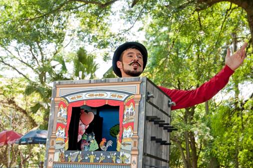 Dia 12 de outubro, quarta-feira, às 11h e às 14h. Duração: 45 min. (cada sessão). Local: Rua Central. Livre. Grátis.