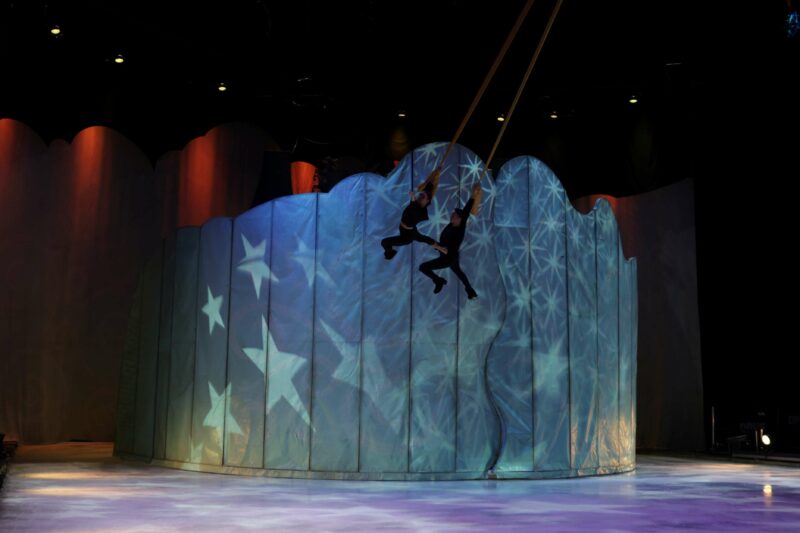 As cenas misturam acrobacias, projeções, iluminação especial e trilha sonora sincronizada com os movimentos no gelo. São mais de 250 figurinos e 58 patinadores de 12 nacionalidades, em um show coreografado com alta tecnologia. As roupas contam com sensores que interagem com o sistema de luzes do palco, criando efeitos visuais que acompanham os movimentos dos artistas em tempo real. Depois que o espetáculo começa, os patinadores não tiram os patins até o final da apresentação.