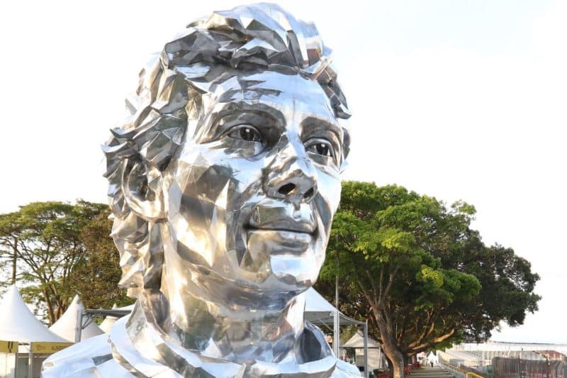 Um busto do Ayrton Senna, também batizado de Nosso Senna (Escultura Ayrton Senna – Arte Urbana), feito por Lalalli Senna, multiartista e sobrinha do piloto.