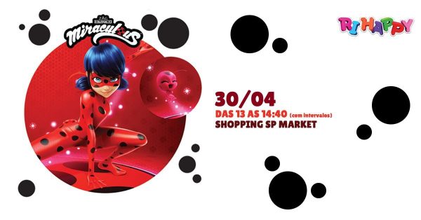 “Eu me chamo me Marinete, uma menina como as outras, mas tem uma coisa que ninguém sabe… porque eu tenho um segredo…Sou Lady Bug Úuuuuu!!!! Se você sabe bem do que estamos falando, esta dica de passeio é tudo o que você está precisando! A personagem da Lady Bug estará AO VIVO neste domingo, 30/04, na loja de brinquedos Ri Happy, das 13h às 14h40 (com intervalos*).