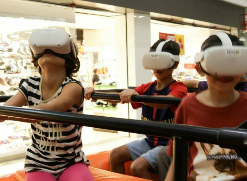 Para os aventureiros de plantão, o simulador de rafting em realidade virtual oferece uma experiência emocionante. As crianças podem se imaginar desbravando corredeiras e enfrentando obstáculos a bordo de um bote. A atividade é permitida para crianças de 4 a 15 anos, com turmas de até 6 participantes e duração de 5 minutos por vez.