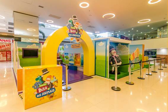 Para finalizar a brincadeira, im escorregador do tipo tobogã (fechado), iluminado por dentro, leva os pequenos para uma piscina de bolinhas azuis, simulando água. O espaço também conta com uma escultura do Bita para os pequenos e suas famílias tirarem várias fotos.