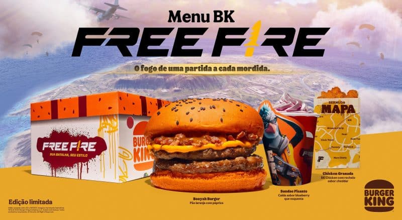 Chamando os gamers que curte Free Fire! Os jogadores irão vibrar com essa novidade que vai saciar a fome. O Burger King realiza o relançamento do combo Free Fire no dia 1° de março, com direito a uma loja totalmente tematizada na esquina da Av. Paulista com a Av. Brigadeiro Luís Antônio.