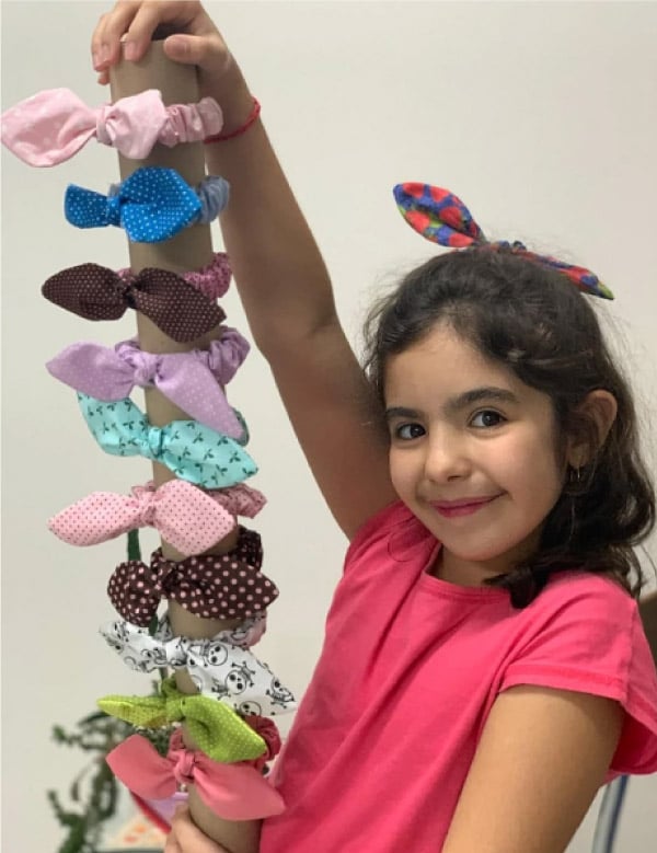 A iniciativa, nascida nesses tempos de pandemia da Covid-19, veio pra ajudar a instituição médica a comprar um novo respirador. Batizando a campanha de “Santa Causa”, a jovem começou a fabricar e vender scrunchies, laços que podem ser usados como pulseira ou como acessório de cabelo.