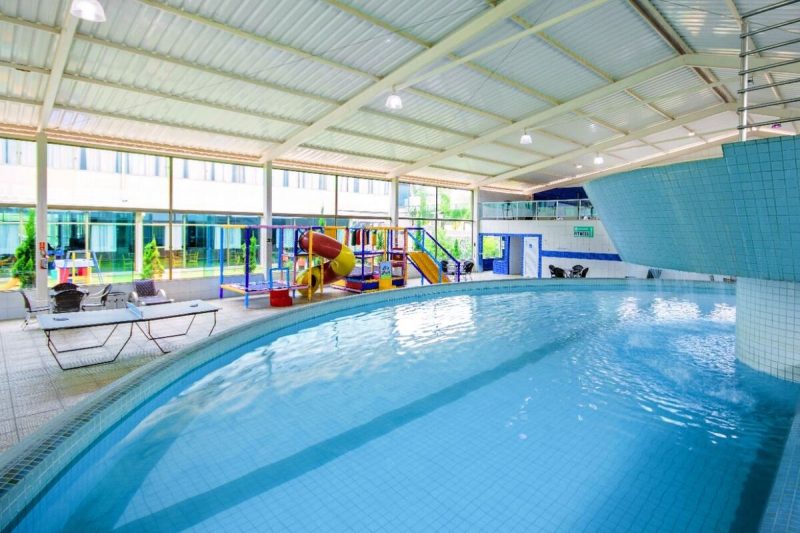 Faça sua reserva aquiA piscina coberta é o ponto alto do hotel e conta com uma cascata na parte central, ideal para nadar até lá e deixar a água cair sobre os ombros. Um verdadeiro spa! O espaço fica ainda mais divertido porque o Espaço Kids fica bem ao lado da piscina, e conta com mesa de ping-pong, cama elástica, piscina de bolinhas e escorregador.