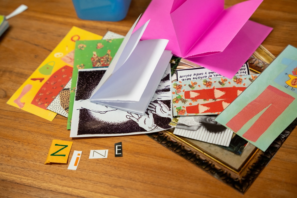 A proposta dialoga com o trabalho de Yuli Yamagata, em cartaz na exposição  “O horror, o humor e o absurdo”, do I Ciclo Expositivo de 2026, que articula referências de quadrinhos, mangás e animes. A partir desse repertório, os participantes são convidados a desenvolver seus próprios zines, explorando o formato como espaço de criação livre. A atividade estimula a experimentação com ilustrações, textos e outras produções autorais, aproximando o grupo do universo da artista.
