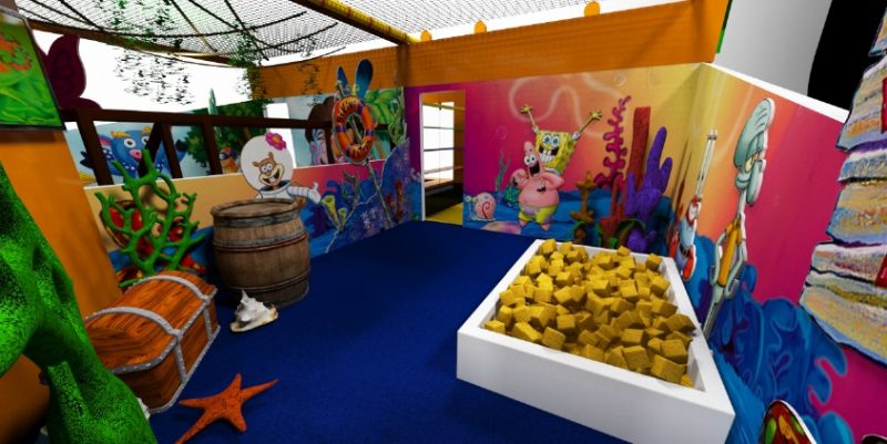 • Bob Esponja: as crianças precisam ajudar o amiguinho da calça quadrada a encontrar as chaves do baú do tesouro, em uma piscina repleta de esponjas.