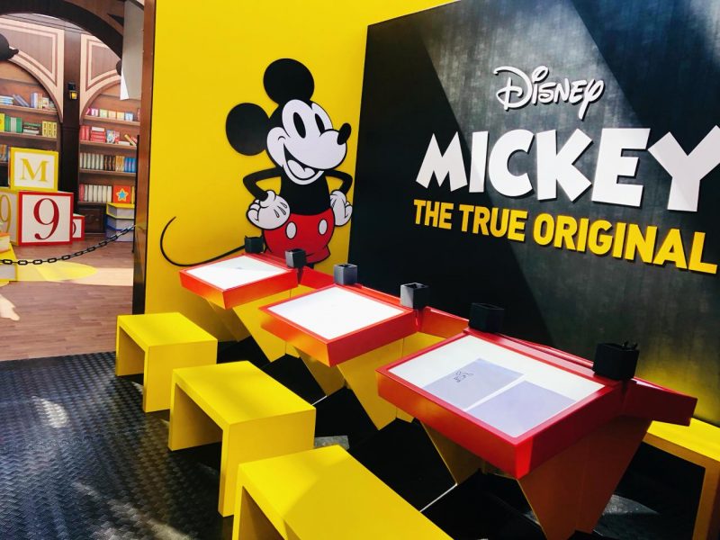 A atração é dividida em quatro espaços e, logo na entrada, os participantes conferem a evolução do personagem no Painel Linha do Tempo, que reúne imagens de algumas das versões do Mickey. No segundo cenário, a Mesa de Luz, a família toda poderá fazer a reprodução de desenhos do Mickey em mesas iluminadas. Na sequência, os visitantes entram na Oficina de Animação, onde vão elaborar animações com blocos de papel. Por fim tem a Biblioteca, que é o maior dos cenários, com diversas ações interativas como TV, tapete com projeção e diversos elementos remetendo à história do Mickey Mouse.