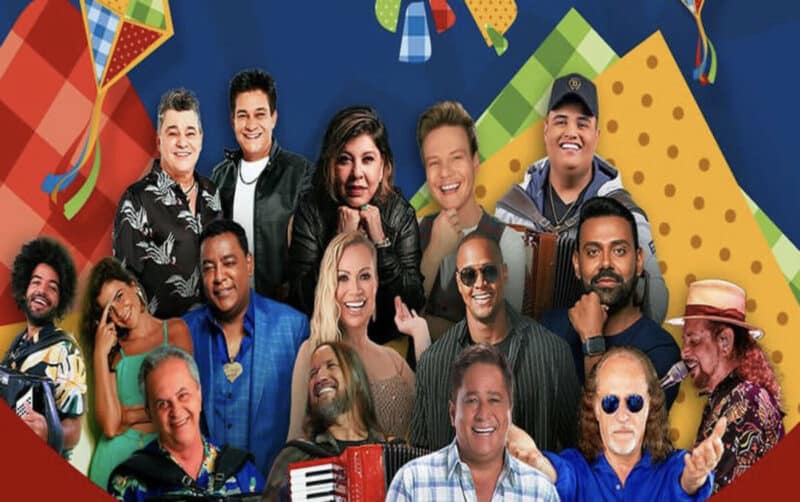 Os shows dos artistas acontecem em três locais: Vila Junina, Ginásio e Coreto. Dá uma olhada na programação de cada dia: