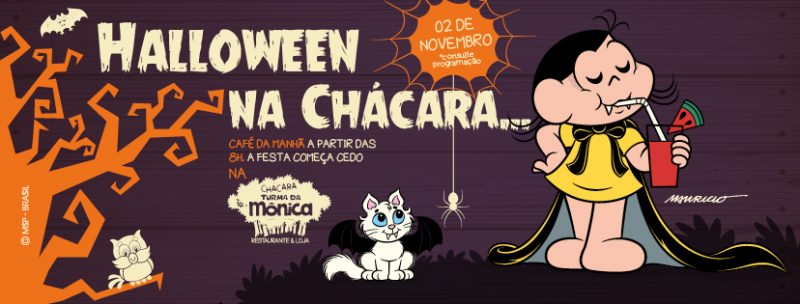 O Dia das Bruxas começa cedinho na Chácara Turma da Mônica! A festa “Halloween na Chácara – A diversão continua…” acontece no dia 2 de novembro a partir das 8h, com o Café da Manhã de Haloween, um ótimo horário para quem tem crianças pequenas e quer uma programação diurna, para antes da soneca!