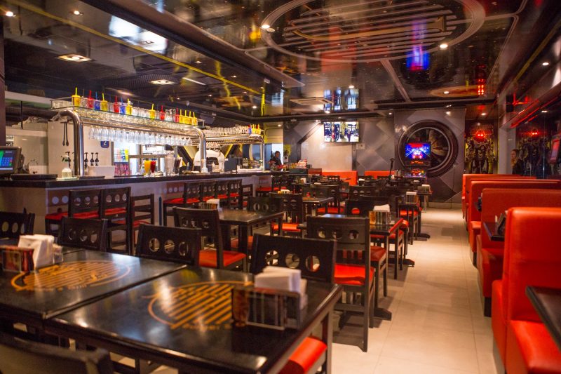 O ambiente em formato de nave espacial é perfeito para quem sonha em conhecer o espaço. Já na entrada os visitantes têm a sensação de estar embarcando em uma viagem. Na unidade da Chácara Santo Antônio também é possível pegar uma mesa com uma bela “vista para a galáxia”.