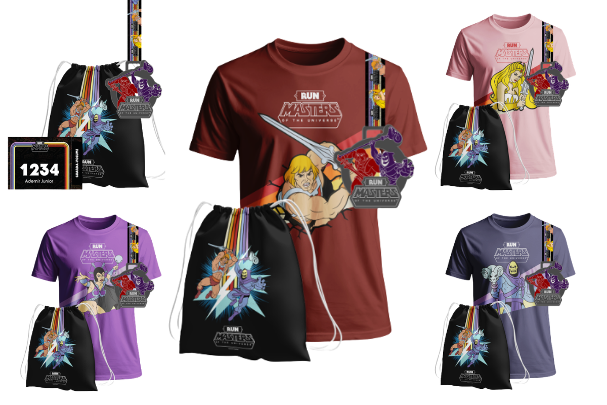 Os participantes podem escolher entre diferentes kits inspirados nos personagens do universo He-Man. Todos incluem itens básicos para participação, além de brindes exclusivos.