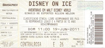 “Domingo de manhã, dia 19 de junho de 2011, dia em que me livrei de uma vontade que me persegue há anos. Fui a um espetáculo de patinação no gelo. Como estava com o hóspede mirim em casa e meu presente para ele deaniversário foi levá-lo ao Disney On Ice – Aventuras em Walt Disney World no Ginásio Nilson Nelson, em Brasília, juntei o útil ao agradável. Gostei, matei minha vontade e quero ver um espetáculo adulto na primeira oportunidade que tiver.