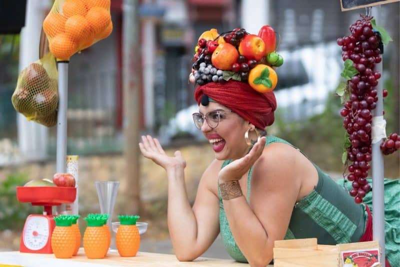 Chiquita é uma feirante que adora um público para fazer suas peripécias enquanto vende a sua fruta. Desbordada, engraçada, sincera e muito emocional, Chiquita conduz o espectador a uma viagem na qual ela conta de onde vem e se pergunta aonde vai, convidando ao público a descobrir, junto com ela, uma nova etapa na sua vida de feirante de frutas. A Louca das Frutas tem criação, concepção e interpretação de Painé Santamaria e direção de Leticia Vetrano.