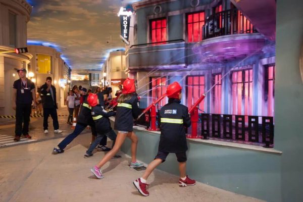 A cada meia hora, por exemplo, uma simulação de incêndio acontece no Hotel Central. Um mini carro de bombeiros traz os recém-formados e orgulhosos profissionais que irão controlar o fogo. Os feridos são removidos pelos enfermeiros e levados ao hospital.
