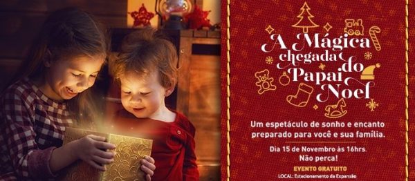 Já às 17h ainda do dia 18/11, a chegada do Papai Noel ocorrerá em grande estilo com direito a banda que tocará uma fanfarra especial para a ocasião! A garotada que estiver aguardando o personagem vai ganhar guloseimas como pipoca, algodão doce e balões. O Papai Noel ficará disponível para ouvir e tirar fotos com as crianças no shopping até o dia 24 de dezembro, das 12h às 20h, em novembro, e das 10h às 22h em dezembro.