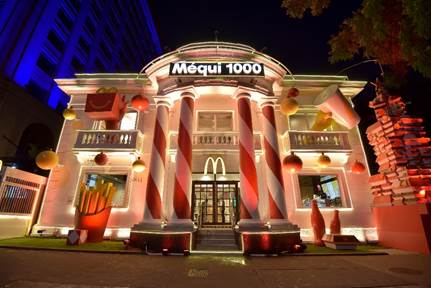 Um dos recentes e mais visitados pontos turísticos da Avenida Paulista acaba de ganhar uma super decoração de Natal. O Méqui 1000, milésima unidade da rede de fast food que fica localizada em um casarão histórico na principal avenida da cidade, celebra um ano de existência com um cenografia formada por diversos elementos que remetem à marca MCDonald’s e estimulam a interação com o público.
