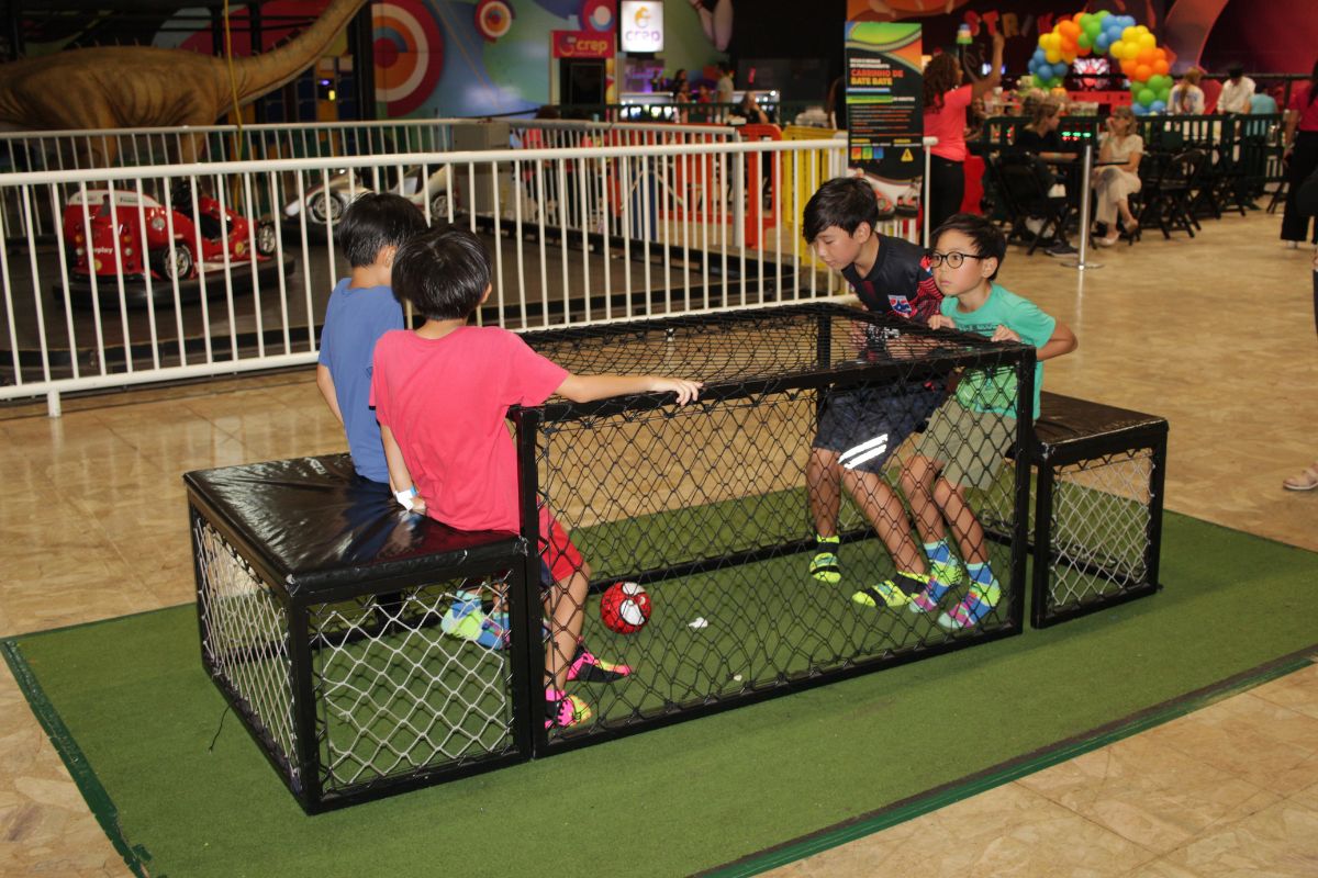 A Área Kids atende bebês a partir de 6 meses até crianças de 6 anos, com brinquedão, piscina de bolinhas, mini cidade cenográfica, mini campo de futebol e escorregadores. Para os maiores, há atividades com mais desafio, como trampolins, escalada, circuito ninja e laser tag.