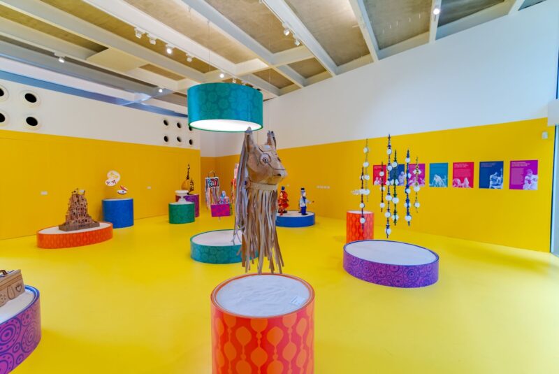 Além da exposição, o espaço conta com uma loja que comercializa peças artesanais de diferentes regiões do Brasil, promovendo o comércio justo e o consumo consciente.