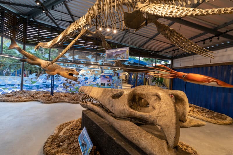 Os visitantes farão uma viagem no tempo ao se deparar com réplicas em tamanho real de animais marinhos que habitaram os mares da América do Sul, sendo que alguns deles conviveram no mesmo período dos dinossauros, ou até mesmo antes do período Jurássico.