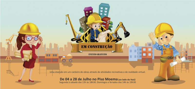 O espaço “Em Construção” apresenta diferentes estações, convidando a criança a novos desafios físicos e mentais. No espaço para modelagem e impressão 3D, por exemplo, elas vão criar um parafuso e imprimir a peça em uma impressora 3D. Na área “Projetando Moradias”, elas vão desenhar novas casas, usando a criatividade. Haverá oportunidade também para criações em realidade virtual com a ajuda do jogo Minecraft e óculos 3D.
