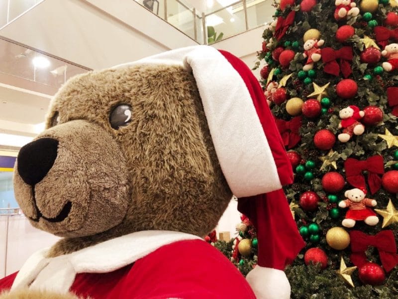 Até mesmo os animais de estimação podem participar das fotos em família com um troninho ao lado do Papai Noel! Além disso, a Assistente Virtual ANA no WhatsApp ajuda os clientes a entrar na fila online para fotos com o Papai Noel e para brincar na roda gigante.