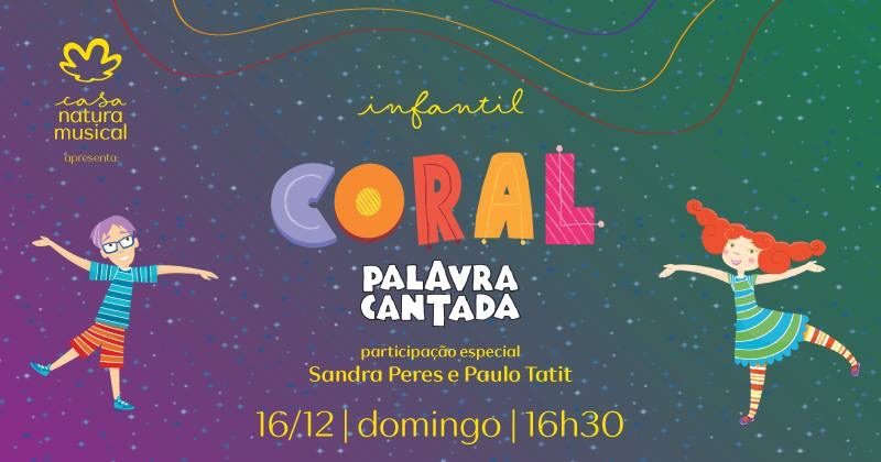 Que tal aproveitar em família o super Coral Palavra Cantada, na Casa Natura Musical, no dia 16 dezembro, em duas sessões: das 14h às 15h30 e das 16h30 às 18h30. Os ingressos custam entre R$60 e R$100 a inteira, mas leitores do São Paulo para Crianças têm 50% desconto. Basta digitar o código SPPC50