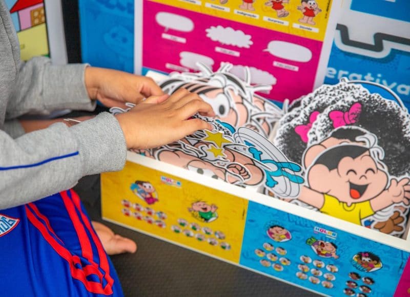 Quem aí adora os gibis da Turma da Mônica? Imagina ter a oportunidade de participar de uma oficina interativa de quadrinhos, uma verdadeira viagem pelo universo lúdico e criativo dos gibis para as crianças. Chamada de HQ LAB, a oficina temática da Turma da Mônica, que acontece no Shopping Eldorado, é um espaço onde as crianças podem criar um “gibizão” de 1,4 metros, com diferentes histórias contada pelos pequenos com os personagens da turminha.