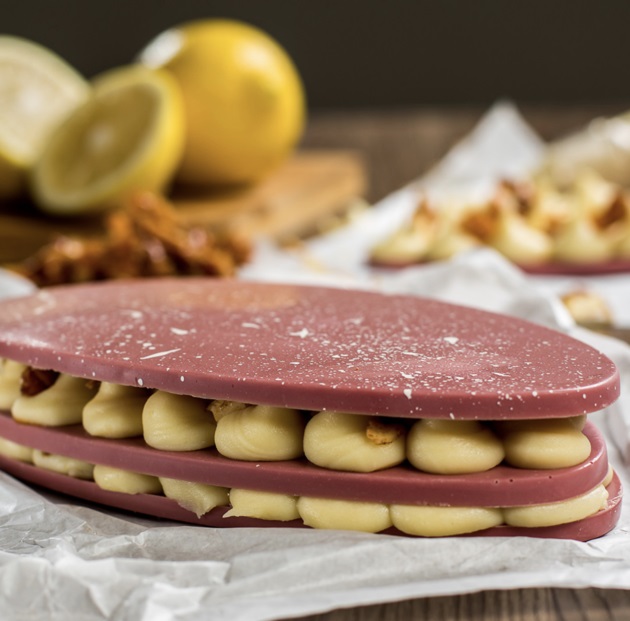 Ah, esse foi longe demais! O ovo plano é um ovo de Páscoa feito em camadas planas de chocolate em formato oval, com recheios entre elas. Quem teve a ideia de criar essa versão inusitada foi a doceria Cristallo, de São Paulo. A intenção é servir como sobremesa em duas versões: chocolate ruby, que é naturalmente rosa, com recheio de ganache de limão e pedaços de coco, e o ovo de chocolate com avelã.