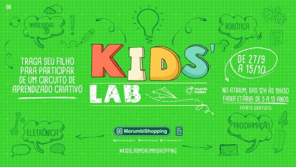 O dia das crianças no Morumbi Shopping vai ser cheio de invenções e experiências para os pequenos. Em parceria com a escola MundoMaker, que oferece cursos no campo da alfabetização digital, o shopping promove o Kid’s Lab.  O objetivo da atração é proporcionar a experiência de brincar aprendendo com, 10 estações que misturam o uso de equipamentos de tecnologia e ferramentas manuais, mesclando robótica e marcenaria. A atração é gratuita e começa a funcionar no dia 27 de setembro, das 12h às 19h30.