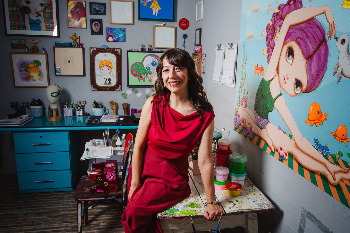 Conhecida por criar um universo visual lúdico, delicado e profundamente autoral, Nina apresenta, desde o primeiro portal da exposição — que reúne obras inéditas e trabalhos já consagrados de sua trajetória — uma experiência que convida o visitante a fugir do ritmo acelerado da cidade e atravessar passagens simbólicas entre o cotidiano e dimensões de encantamento. A partir de então, pelo caminho, surgem jardins mágicos, rios que desafiam a lógica natural, criaturas híbridas, árvores simbólicas que evocam abrigo e origem, além das icônicas meninas de olhos expressivos, reafirmando a potência do imaginário de Nina e criando um espaço de contemplação e descobertas.