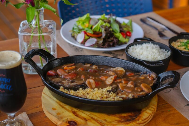 O ambiente tem uma decoração rústica que convida a desacelerar e aproveitar o momento em família. Além das opções tradicionais de grelhados e pratos, o restaurante se diferencia por oferecer um menu noturno com sopas, fondues e versões veganas como o hambúrguer de cogumelos e a moqueca vegetal. Para os adultos, o happy hour conta com drinks autorais à base de ingredientes regionais.